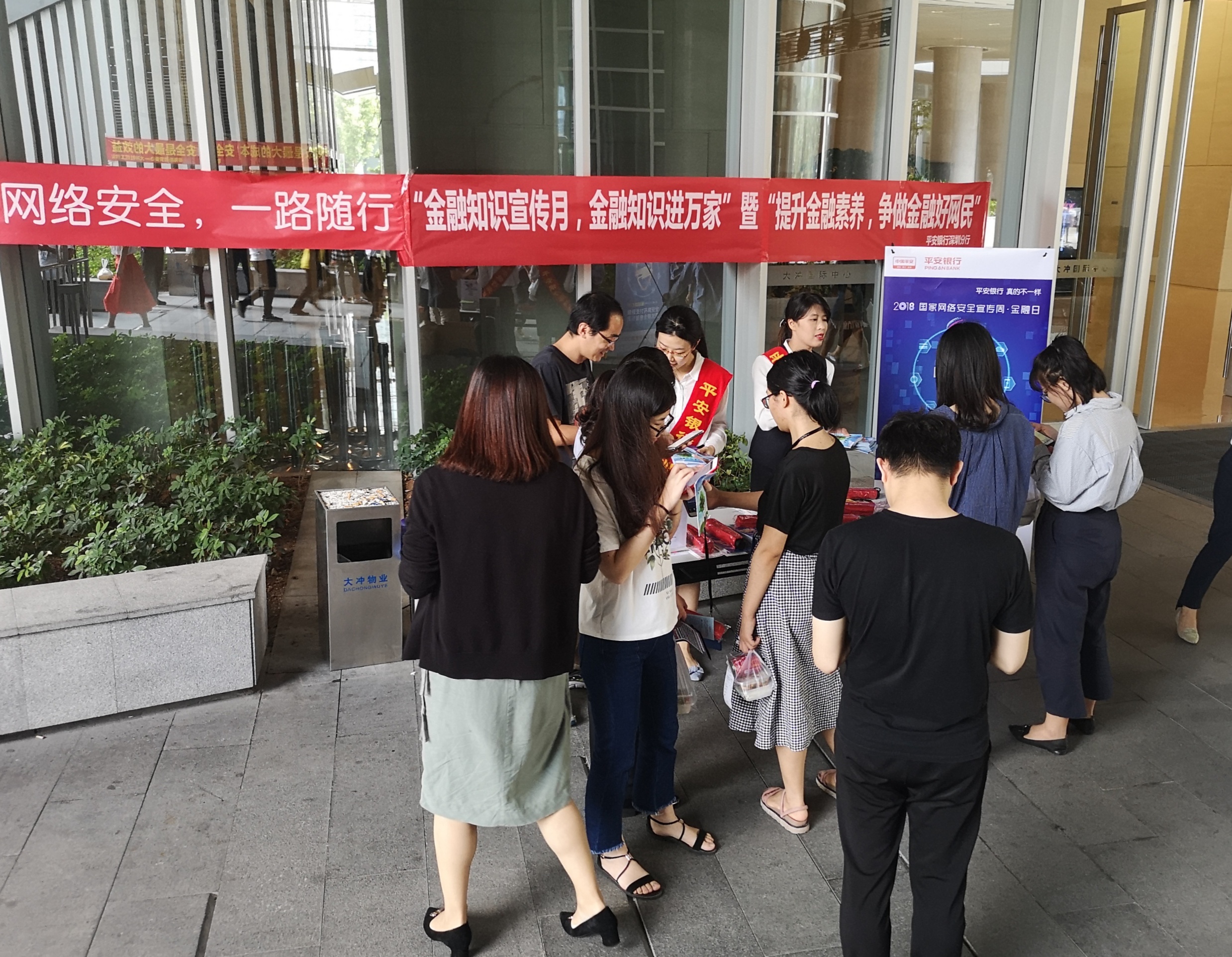針對非法集資案件頻發(fā)的情況,9月19日中午,平安銀行深圳分行組織大沖支行在人群密集區(qū)域設點宣傳,工作人員以發(fā)放宣傳折頁、擺放橫幅、張貼海報等形式向公眾普及各類正規(guī)投資渠道等投資理財知識,引導公眾合理選擇金融產品和服務,提升防范非法金融活動的能力,呼吁公眾遠離非法集資、非法放貸、金融詐騙。此外,該行工作人員還運用生動的案例向公眾宣講了防范電信詐騙的技巧,提高公眾防騙意識。
