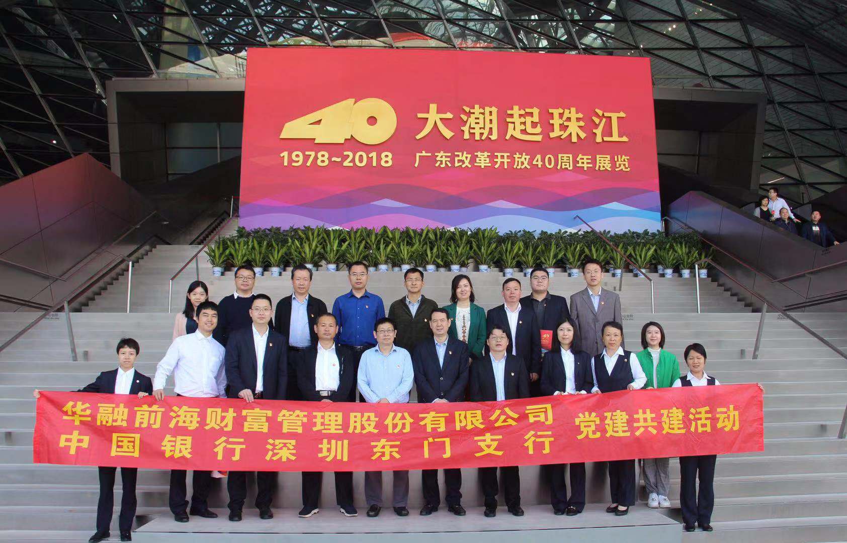 11月29日,中國銀行深圳東門管轄支行轄屬香蜜支行黨支部與華融前海財(cái)富管理股份有限公司黨委會開展黨建共建活動,共同組織雙方黨員參觀“大潮起珠江”廣東改革開放40周年展覽館。