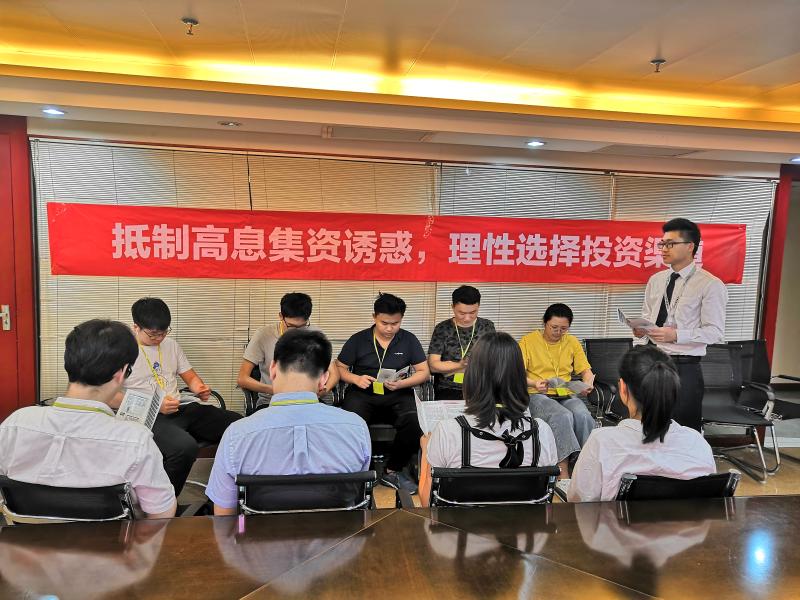 地鐵大廈支行則在深圳市銀服通企業(yè)管理咨詢有限公司舉行金融知識(shí)小講座。通過發(fā)放宣傳折頁、懸掛橫幅、現(xiàn)場(chǎng)講解等形式,緊緊圍繞識(shí)別抵制高息集資誘惑、做好財(cái)務(wù)規(guī)劃、選擇適當(dāng)?shù)漠a(chǎn)品投資理財(cái)?shù)戎R(shí)進(jìn)行講解。同時(shí)溫馨提示企業(yè)員工在辦理銀行卡、匯款、房貸還款等業(yè)務(wù)時(shí)的小竅門,獲企業(yè)員工一致好評(píng)。