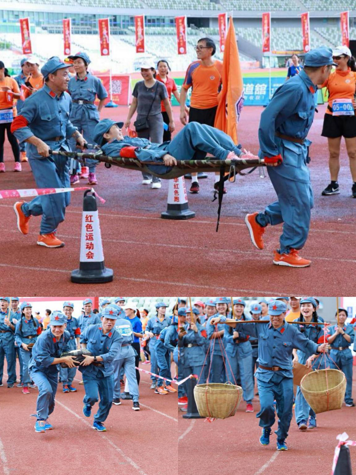 紅色運動會結(jié)合長征路途上的艱苦環(huán)境與革命先輩的英勇事跡設(shè)計了7種不同類型的團隊比賽項目,如穿越烽火線、火線救傷員、朱總司令的扁擔南泥灣大豐收等。讓運動員們在比賽的過程中,著革命前輩的戰(zhàn)衣,回到戰(zhàn)火紛飛的艱苦年代,一路奮勇拼搏征程,邁向新時代。