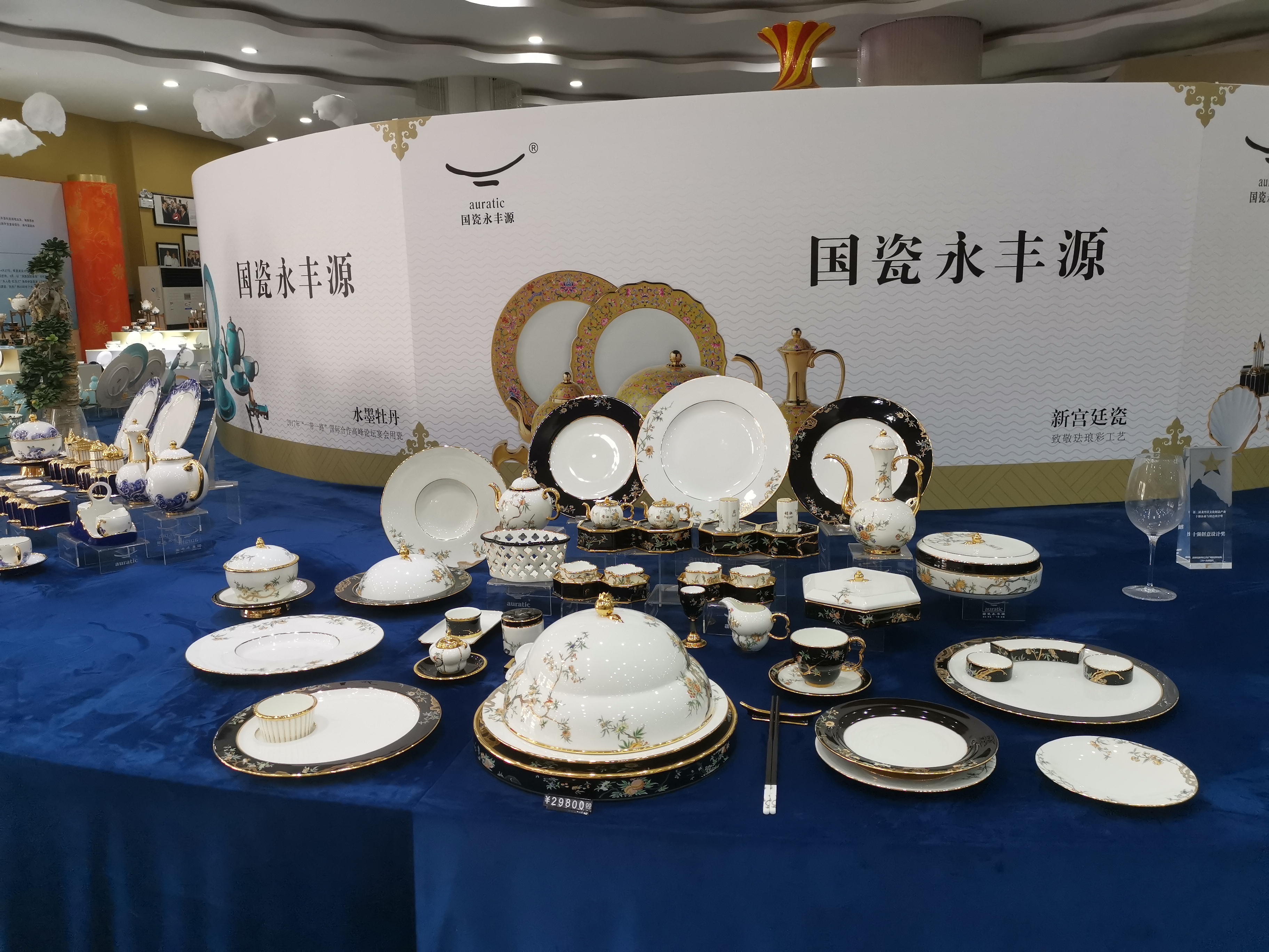 從2015年開始,國瓷永豐源生產(chǎn)的瓷器就頻繁出現(xiàn)在國際及國內(nèi)的重大會議的國宴用餐,以及慶典、節(jié)慶賀禮上。2018年以“先生瓷 ?四海升平”亮相博鰲亞洲論壇年會宴會,成功款待世界賓朋;2017年承接“一帶一路”國際合作高峰論壇餐具任務(wù);2016年承擔(dān)杭州G20峰會夫人午宴用瓷設(shè)計(jì);2015年分別承攬中央政府贈送西藏50周年與新疆60周年大慶官窯定制任務(wù)……