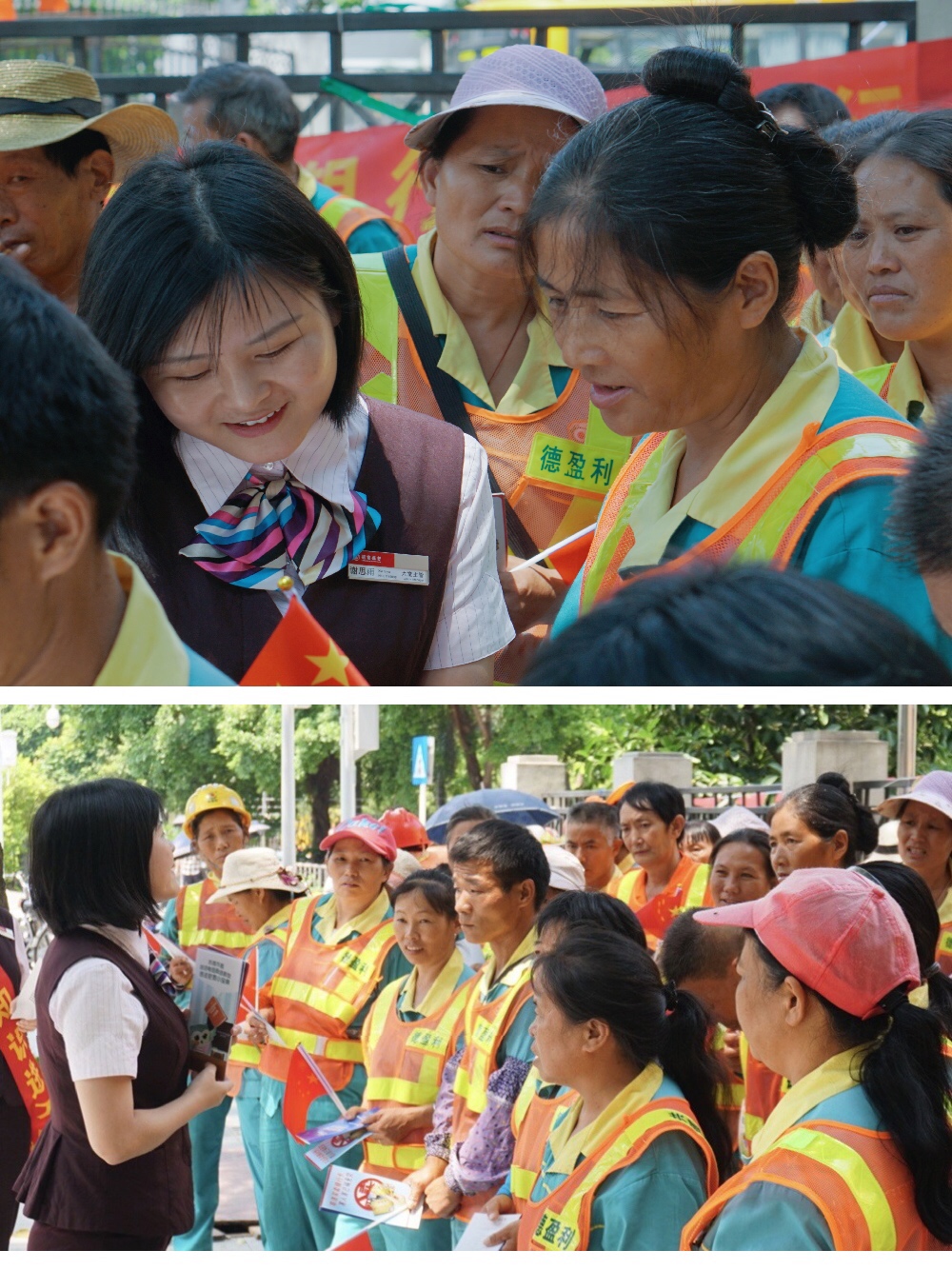 時(shí)代廣場(chǎng)支行走近環(huán)衛(wèi)工人,以金融知識(shí)宣教活動(dòng)實(shí)現(xiàn)“招行紅”與“環(huán)衛(wèi)橙”的美麗相遇。