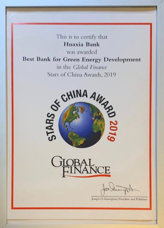 華夏銀行獲《環(huán)球金融》雜志“中國(guó)之星”最佳綠色能源開發(fā)銀行獎(jiǎng)