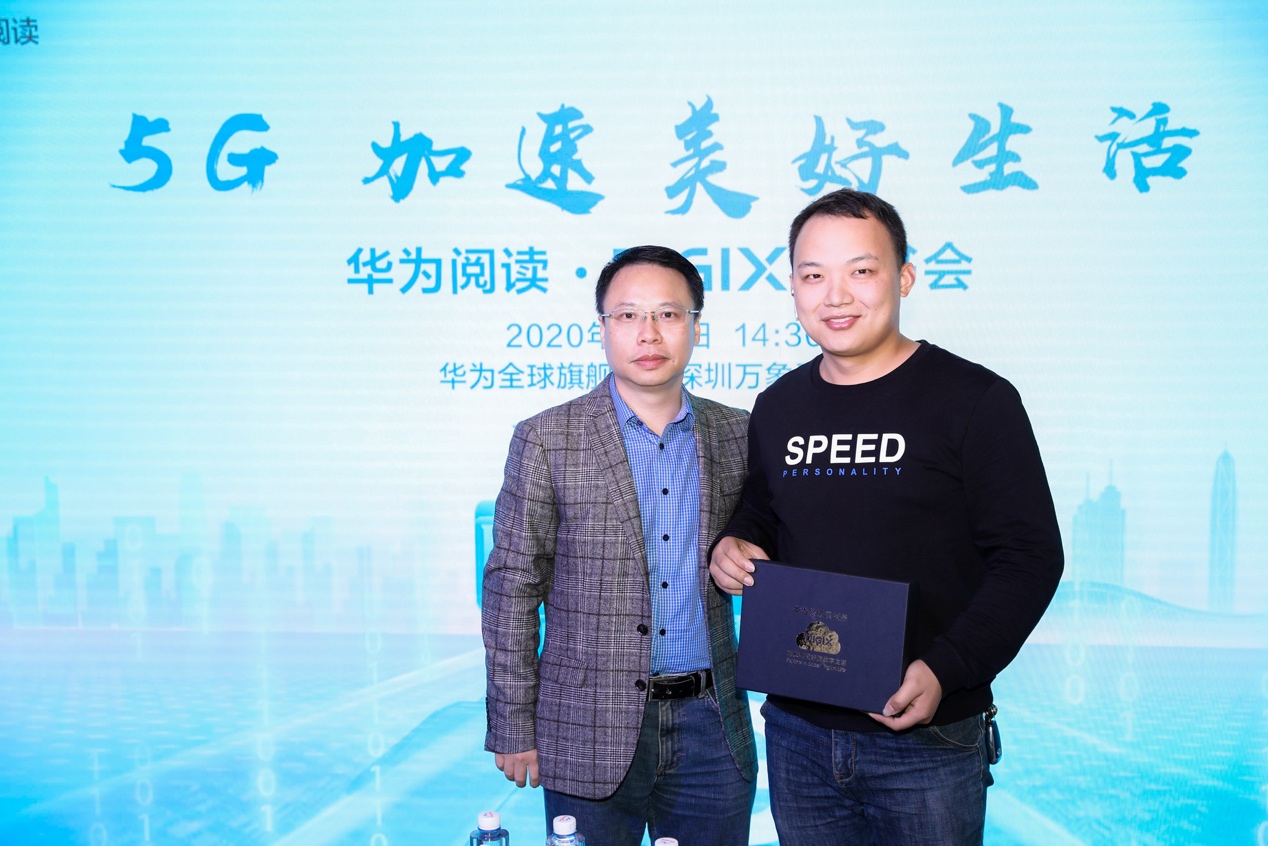 活動(dòng)現(xiàn)場(chǎng),王喜文被授予華為閱讀領(lǐng)讀人并頒發(fā)了領(lǐng)讀人證書,與華為閱讀共同倡導(dǎo)“全民閱讀計(jì)劃”。并且,譚東暉還為王喜文贈(zèng)送一部華為Mate30 Pro5G版手機(jī)與華為終端云服務(wù)DIGIX會(huì)員禮盒,暢享5G,探索美好未來(lái)。王喜文還為讀者們推薦了新書《5G為人工智能與工業(yè)互聯(lián)網(wǎng)賦能》,并現(xiàn)場(chǎng)進(jìn)行簽贈(zèng),讓讀者可以更深入了解5G帶來(lái)的極致生活。
