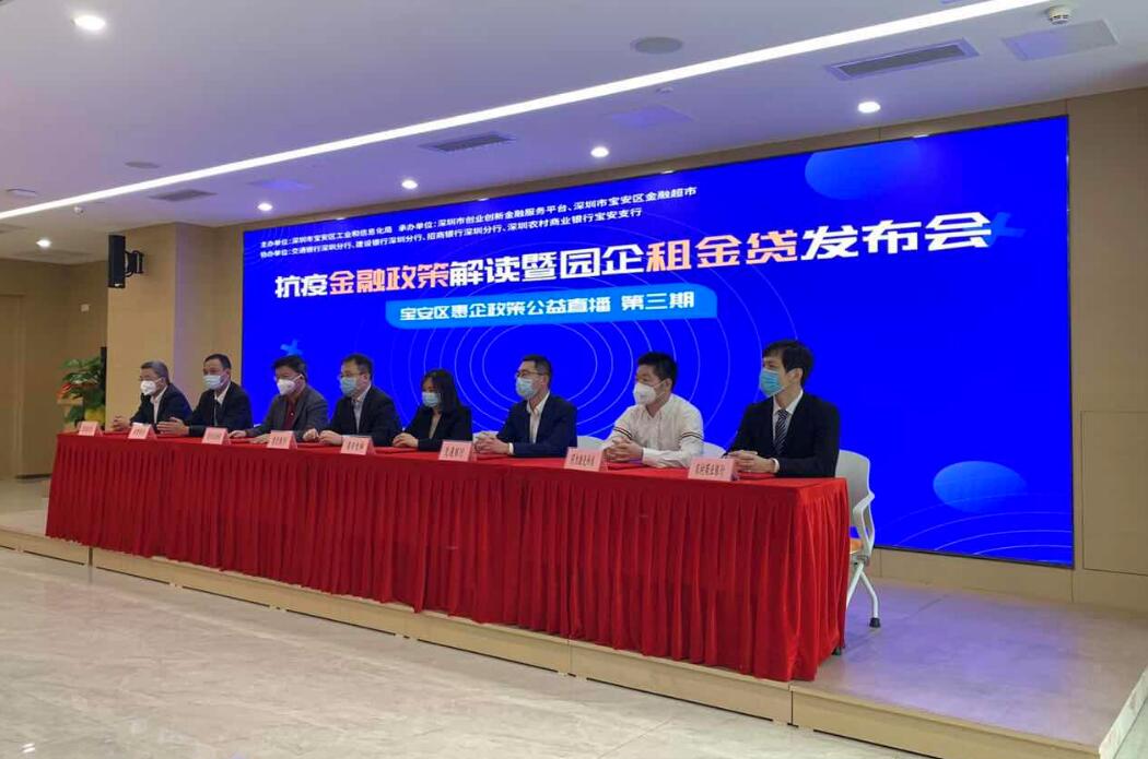 2020年3月11日,由寶安區(qū)金融超市組織的《抗疫金融政策解讀暨園企租金貸發(fā)布會(huì)》進(jìn)行在線直播,區(qū)工信局特別邀請(qǐng)深圳農(nóng)商行寶安支行作為發(fā)布會(huì)的四家協(xié)辦銀行之一,為企業(yè)講解“抗疫周轉(zhuǎn)貸”專項(xiàng)產(chǎn)品。發(fā)布當(dāng)天,深圳農(nóng)商行寶安支行與首筆租金貸客戶深圳市同為激光科技有限公司進(jìn)行了現(xiàn)場簽約。深圳農(nóng)商行寶安支行全力配合寶安區(qū)政府相關(guān)部門的金融抗疫工作,進(jìn)一步加大疫情期間對(duì)中小微企業(yè)復(fù)工復(fù)產(chǎn)的支持力度,為疫情防控持續(xù)貢獻(xiàn)金融力量。本次發(fā)布會(huì)共有1500余人在線觀看。