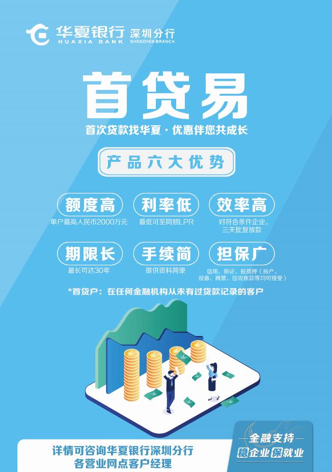 為滿足廣大中小微民營企業(yè)的資金需求,加大信貸投放精準滴灌,華夏銀行創(chuàng)新推出“首貸易”產(chǎn)品,向首貸戶(是指在任何金融機構(gòu)從未有過貸款記錄的客戶)承諾“首次貸款找華夏,優(yōu)惠伴您共成長”的全方面、定制金融服務(wù)?!笆踪J易”產(chǎn)品具有“六大突出優(yōu)勢”,額度高、利率低、效率高、期限長、手續(xù)簡、擔(dān)保廣。