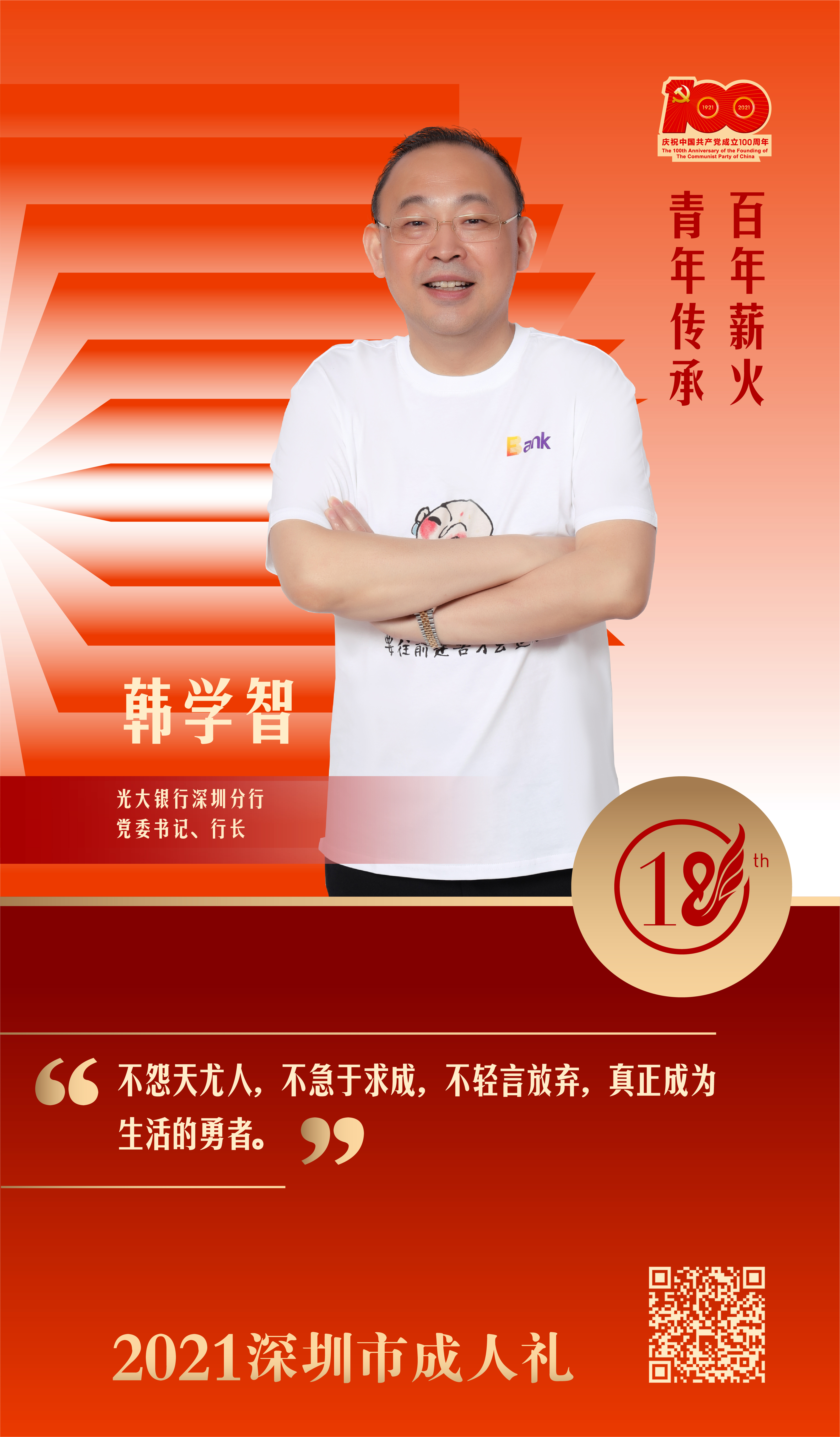 深圳新聞網(wǎng)·見(jiàn)圳客戶端2021年5月10日訊“以‘三勤四慎’提升青年生活幸福感,希望年輕人能勤于思考,善于思考,學(xué)會(huì)從思考中發(fā)現(xiàn)問(wèn)題,解決問(wèn)題,這樣才能取得更快的進(jìn)步?!痹?月7日拉開(kāi)序幕的“百年薪火,青年傳承”2021深圳市成人禮系列活動(dòng)中,光大銀行深圳分行黨委書(shū)記、行長(zhǎng)韓學(xué)智作為青春代表,通過(guò)網(wǎng)絡(luò)渠道,為青年們送上飽含激情和期待的寄語(yǔ)“明信片”。