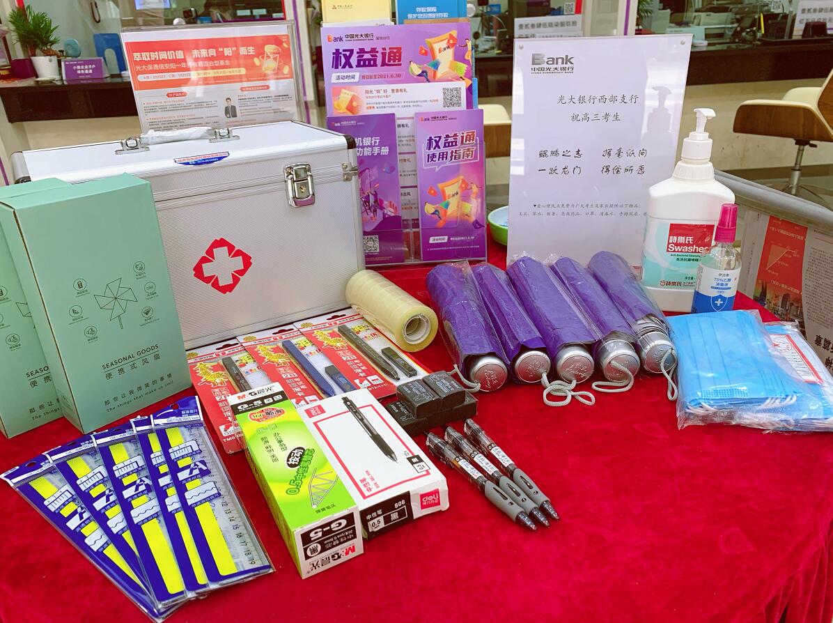 6月7日-8日期間,光大銀行深圳分行的一些支行網(wǎng)點(diǎn),出現(xiàn)了暖心的一幕——高考便民服務(wù)驛站免費(fèi)為附近考點(diǎn)的廣大考生與家長(zhǎng)提供部分文具、口罩、解暑藥品、茶水、便攜風(fēng)扇、遮陽(yáng)傘等便民物品。不少送考家長(zhǎng)等候期間在便民驛站停留并感受到細(xì)心的服務(wù),連連稱贊銀行的服務(wù)人性化、貼心。