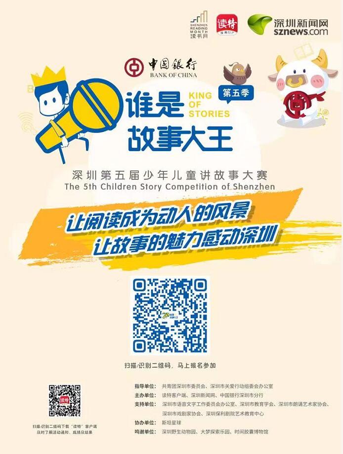據(jù)了解,“讓閱讀成為動(dòng)人的風(fēng)景,讓故事的魅力感動(dòng)深圳”是“誰是故事大王”活動(dòng)的口號(hào)與主旋律,中國銀行作為中國持續(xù)經(jīng)營時(shí)間最久——達(dá)109年,全球化和綜合化程度最高的銀行,而中國銀行深圳市分行成立于1978年,是深圳成立時(shí)間最早的商業(yè)銀行,40余年來始終與深圳同生共長。在如今的“雙減”政策背景下,積極響應(yīng)國家號(hào)召,中國銀行與讀特客戶端、深圳新聞網(wǎng)聯(lián)合主辦“誰是故事大王·第五季”活動(dòng),根植于公眾利益和社會(huì)需求,以營造良好的青少年閱讀環(huán)境,提升青少年閱讀興趣和口語表達(dá)能力。