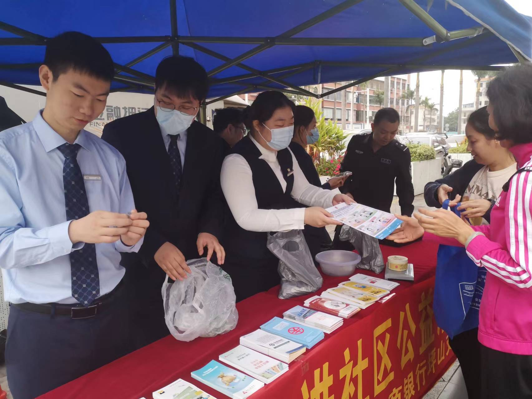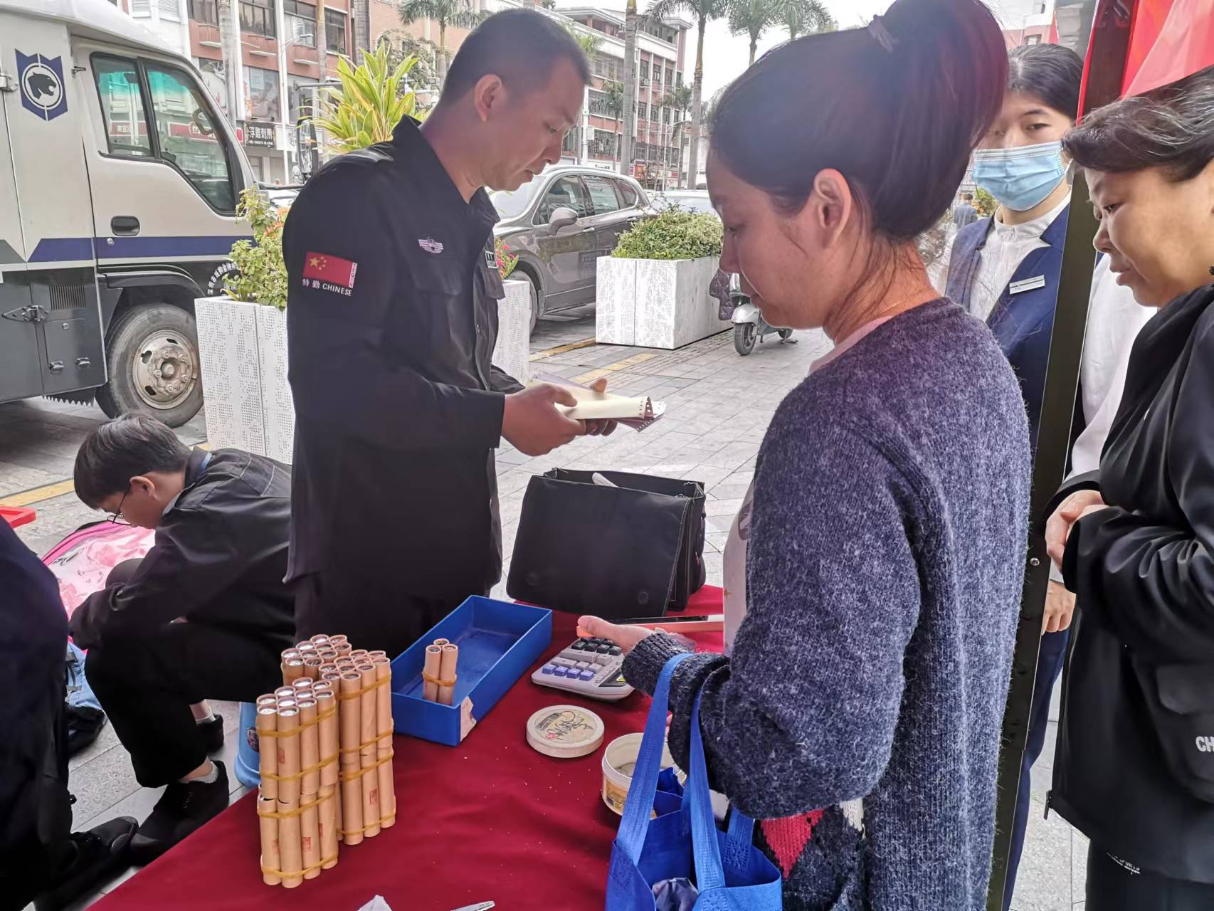 開展硬幣大篷車兌換活動,活躍社區(qū)零鈔交互,滿足社區(qū)居民的硬幣需求。2023年,深圳農(nóng)商銀行聯(lián)合威豹押運(yùn)公司開展17次硬幣大篷車兌換活動,回收硬幣約70萬元,同時(shí)向有需要零散鈔的超市、商戶、市民提供成卷的硬幣兌換。在兌換活動現(xiàn)場,同時(shí)宣傳反假貨幣、不得拒收現(xiàn)金等內(nèi)容,營造良好的人民幣支付流通環(huán)境。