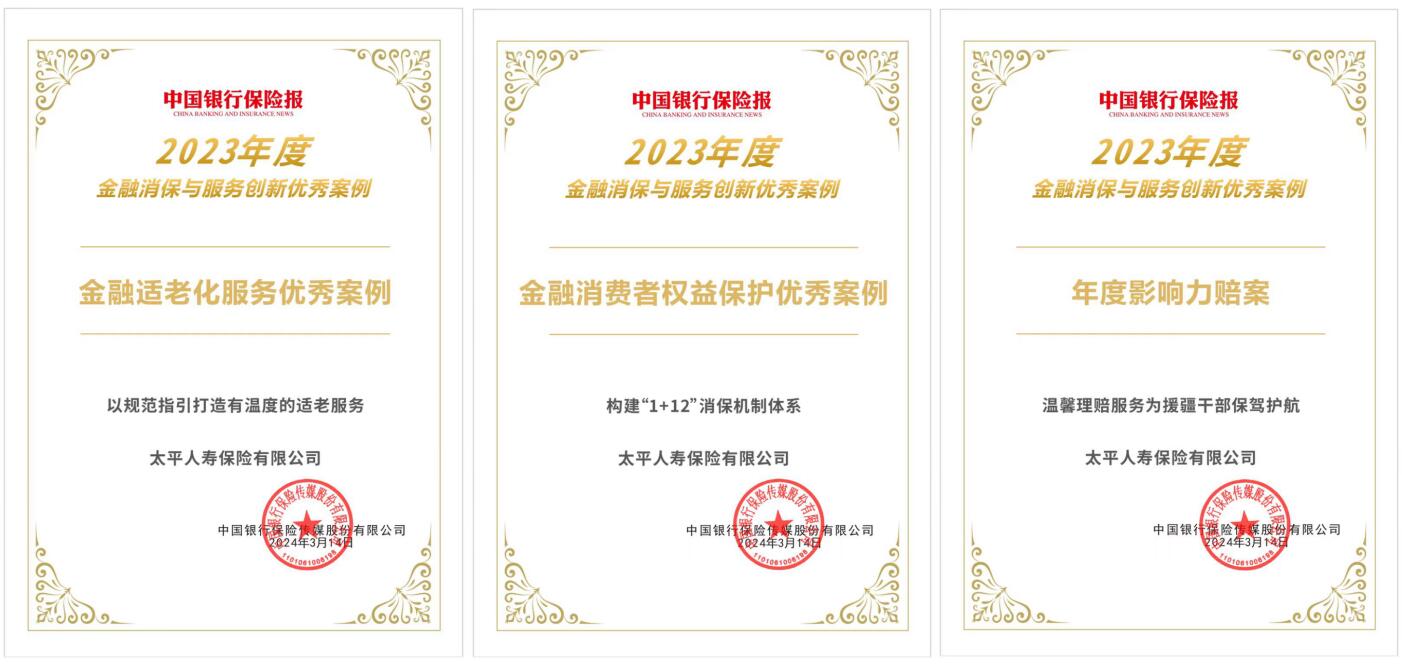深圳新聞網(wǎng)2024年3月15日訊(記者 朱琳 通訊員 宋超群)3月14日,由《中國(guó)銀行保險(xiǎn)報(bào)》主辦的2024金融消保與服務(wù)創(chuàng)新主題活動(dòng)在京舉辦,現(xiàn)場(chǎng)公布了2023年度金融消保與服務(wù)創(chuàng)新優(yōu)秀案例名單,太平人壽三項(xiàng)案例榜上有名,分別入選金融適老化服務(wù)優(yōu)秀案例、年度影響力理賠案例、消費(fèi)者權(quán)益保護(hù)優(yōu)秀案例。
