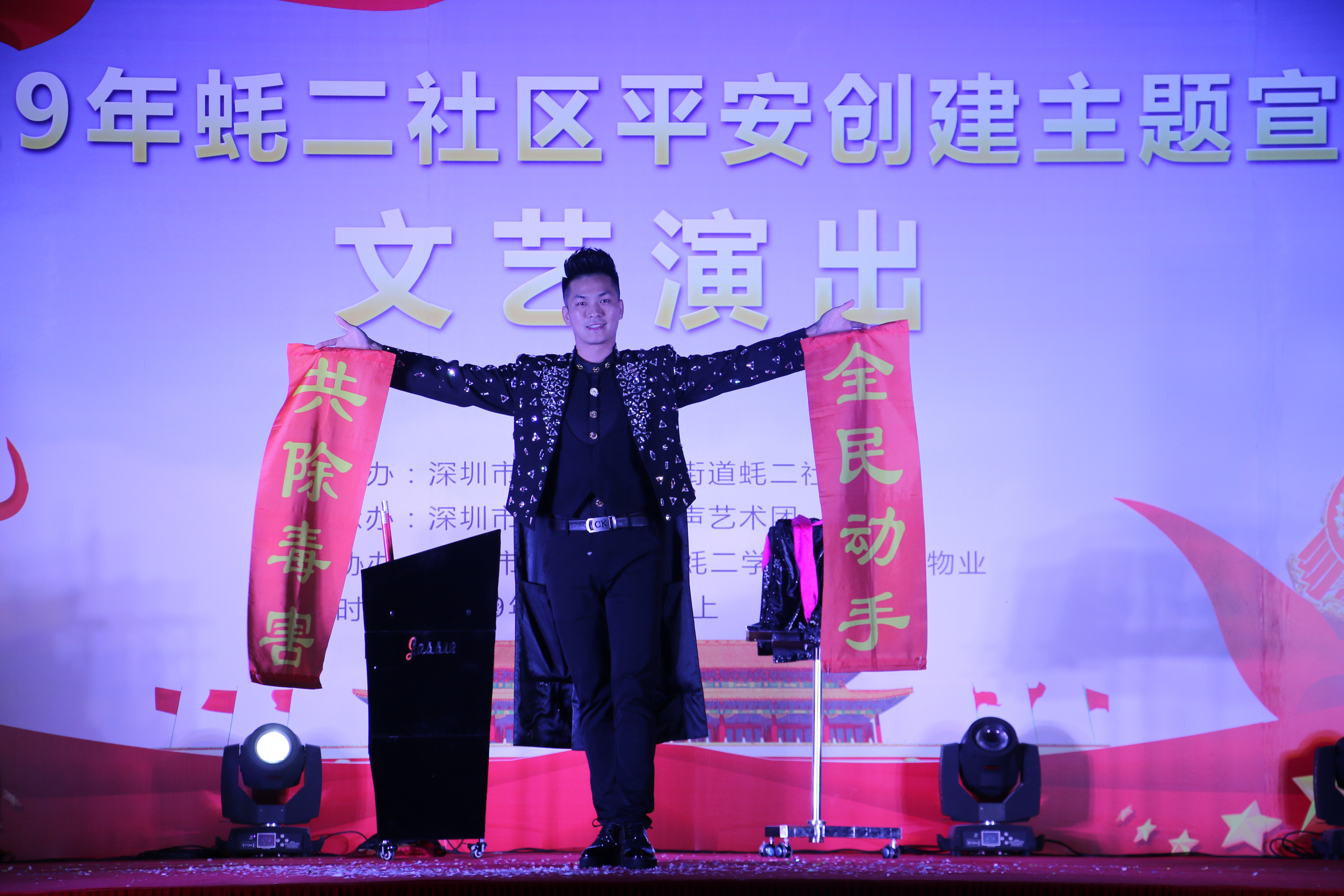 深圳新聞網(wǎng)2019年2月20日訊 (記者/周錦春 通訊員/孫善文)2月19日是元宵節(jié),當晚,由寶安區(qū)沙井街道蠔二社區(qū)黨委主辦,寶安區(qū)愛之聲藝術團承辦的“平安創(chuàng)建宣傳”文藝演出活動在學府花園舉行。本次活動包括了戲曲、歌曲、舞蹈、小品、魔術等多種形式,豐富多樣,生動有趣,為近500名社區(qū)居民提供了一場精神盛宴。