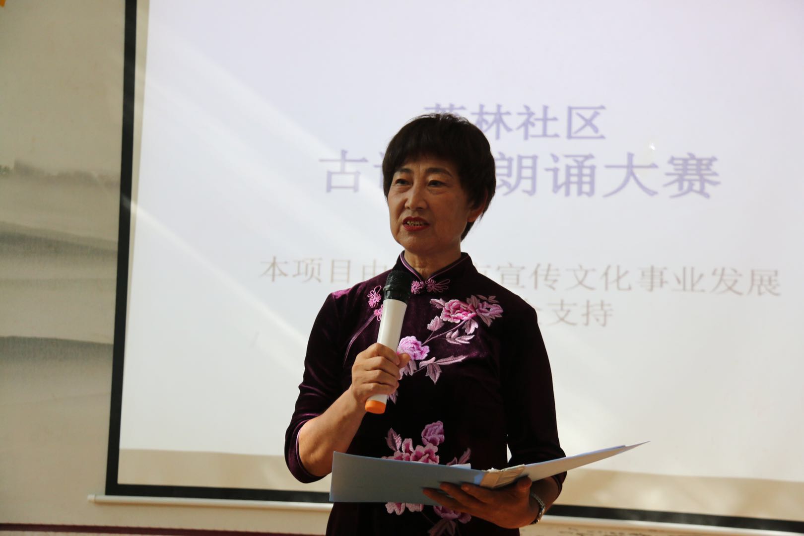 來(lái)自荔林社區(qū)的13位參賽選手參加了本次朗誦大賽,他們朗誦的作品都是家喻戶曉的千古名篇,獲得了社區(qū)居民的真摯喜愛(ài),活動(dòng)現(xiàn)場(chǎng)掌聲與喝彩聲經(jīng)久不息。整場(chǎng)朗誦大賽內(nèi)容豐富、情感深摯,引人入勝。既有飽含深摯情感的《無(wú)題》、訴說(shuō)人世間悲歡離合的《水調(diào)歌頭》、凄楚而不無(wú)激越的《虞美人》,也有蕩氣回腸的《臨江仙》、氣勢(shì)磅礴的《滿江紅》和氣概豪邁的《觀獵》。而《望月懷遠(yuǎn)》、《登金陵鳳凰臺(tái)》、《春夜喜雨》、《望岳》又將大家?guī)Щ亓耸⑻疲美收b的聲音讓我們與盛唐的詩(shī)人進(jìn)行了一場(chǎng)跨時(shí)空的交流。《陌上?!贰ⅰ洞航ㄔ乱埂放c《釵頭鳳》參賽選手朗誦情深意切,深深地感染了在場(chǎng)的觀眾,贏得了大家的一致好評(píng)!