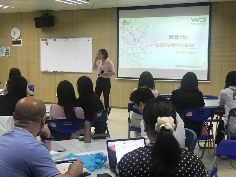 據(jù)介紹,在2019年秋季學(xué)期,新雨計劃項目共收到福田區(qū)20個學(xué)校,181個班,362節(jié)課的普法課程授課需求,自10月14日開始,新雨計劃項目志愿律師已經(jīng)陸續(xù)開始進(jìn)入校園授課。為滿足更多學(xué)校的普法課程需求,同時也為更多志愿律師提供參與到新雨計劃項目活動中的機(jī)會,維德中心于10月18日、19日分別舉辦了一場志愿律師崗前培訓(xùn)活動,參與過培訓(xùn)的律師后續(xù)需要提交一份試課視頻供新雨計劃資深授課律師進(jìn)行評估,試課視頻經(jīng)評估合格的志愿律師將能夠認(rèn)領(lǐng)班級參與校園授課活動。