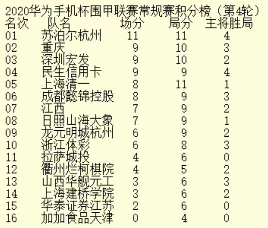 2020華為手機(jī)杯中國圍棋甲級(jí)聯(lián)賽第四輪深圳宏發(fā)3:1龍?jiān)鞒呛贾?nbsp;