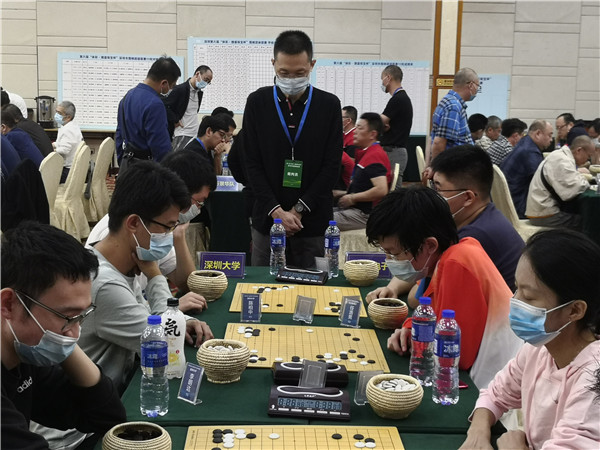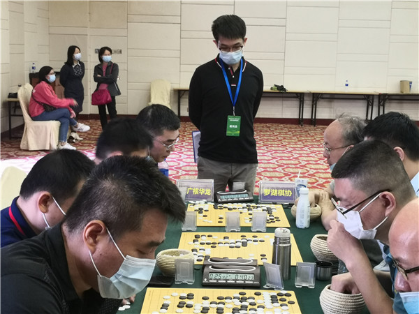 本屆聯(lián)賽在仍在抗疫的形勢下來之不易,賽事組委會非常珍惜,在防疫方面下了一番功夫。本次賽事執(zhí)行主任、著名國手梁偉棠九段介紹說:組委會在本次賽事《補充規(guī)定》中要求“本屆賽事因為疫情防控需要,全體人員必須佩戴口罩,掃碼入場,并全程不得摘下口罩;體溫過高者謝絕入場”。記者觀察到,現(xiàn)場的防疫落實還是比較到位的,一是在賽場入口布置了三人團隊,加強了掃碼、體溫檢測、提醒大家戴口罩,凡是入場的隊員、工作人員以及觀戰(zhàn)的圍棋愛好者,都必須進行體溫檢測,符合正常體溫的方可入場參賽;二是要求參賽隊員和工作人員戴口罩;三是加強賽場巡查,對沒有自覺戴口罩的在場人員進行勸導??傮w來說,賽場防疫秩序良好。