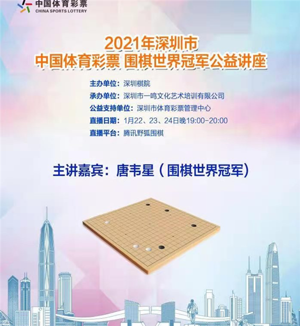 見圳客戶端?深圳新聞網(wǎng)訊(記者周錦春)2021年1月22、23、24日連續(xù)三天晚上,由深圳棋院主辦,深圳市一鳴文化藝術(shù)培訓(xùn)有限公司承辦,深圳市體育彩票管理中心支持的“2021年深圳市中國體育彩票圍棋世界冠軍公益講座”在騰訊野狐圍棋平臺線上舉行。