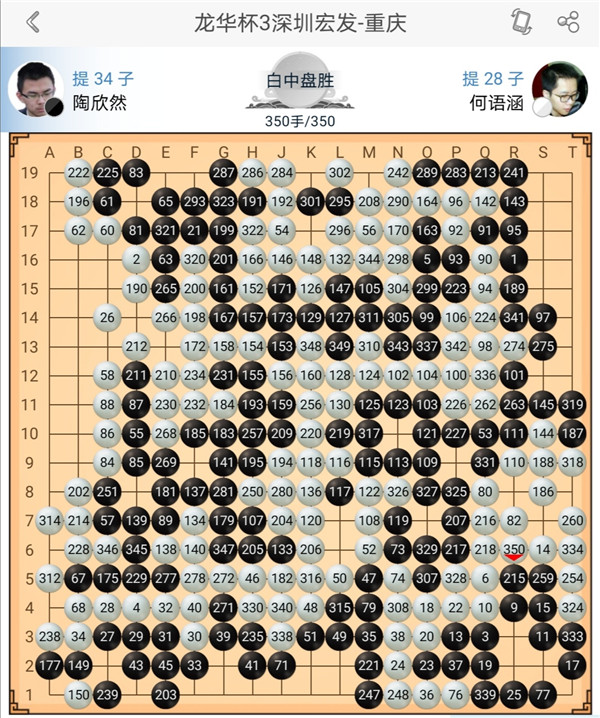 三臺(tái)陶欣然執(zhí)黑對(duì)陣小將何語涵,局面一直糾結(jié),官子階段有所失誤,最終白棋獲勝。四臺(tái)小將石豫來執(zhí)白對(duì)陣小將李翔宇,白棋進(jìn)入小官子時(shí)候局勢(shì)領(lǐng)先,可惜下出了一個(gè)小勺子,被黑抓住機(jī)會(huì)形成小轉(zhuǎn)換便宜了幾目棋。最終白棋以3/4子差距落敗。