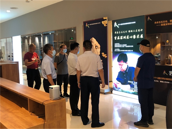 活動開展期間,深圳市民協(xié)專職副主席張晉文、深圳市文創(chuàng)體社會組織黨委第一書記、深圳市群眾文化學會會長楊素賢、深圳市深港文藝家交流協(xié)會主席、福田區(qū)文化議員王廉運等多位嘉賓參觀了匠心藝術(shù)展,陳宗藝現(xiàn)場介紹了玉雕作品,中國工藝美術(shù)大師錢高潮、中國工藝美術(shù)大師裴永中等也前來參觀交流。