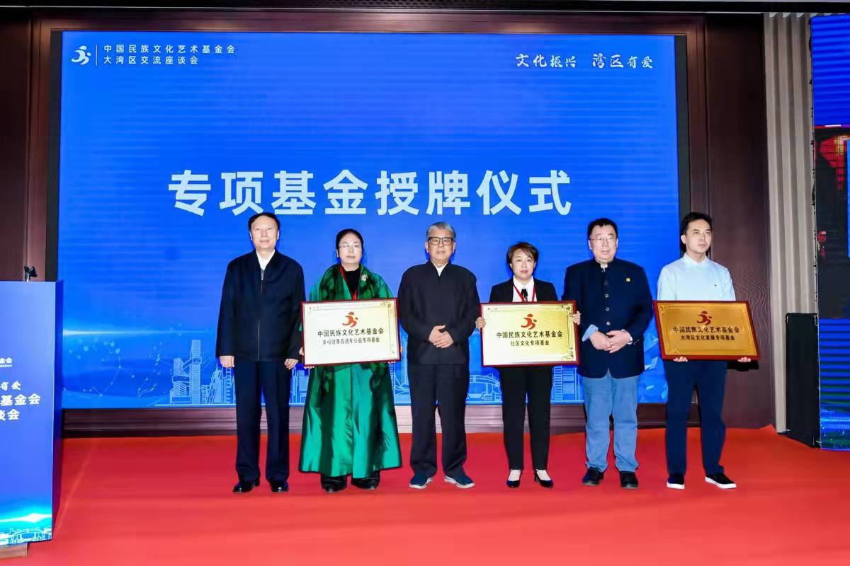 在活動現(xiàn)場,主辦方為大灣區(qū)文化發(fā)展專項基金、社區(qū)文化專項基金、幸福健康直通車公益專項基金舉行了授牌儀式。三個專項基金的加入,為中國民族文化藝術(shù)基金會注入了新鮮血液,更為大灣區(qū)文化發(fā)展匯聚起了智慧和力量。