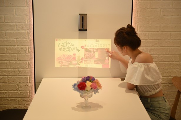 除了“情緒地帶”,智慧餐廳還提供了多元化的互動(dòng)服務(wù)。門(mén)店等位區(qū)有一整面具有奇幻動(dòng)感效果的投影互動(dòng)墻,通過(guò)獨(dú)特的觸摸啟動(dòng)可以探索必勝客的比薩從原料種植、加工、生產(chǎn),一直到制作成品、奉客、外送等一系列過(guò)程,為顧客提供趣味十足的多感官虛擬互動(dòng)體驗(yàn),讓無(wú)聊的等位時(shí)間也變得興味盎然。