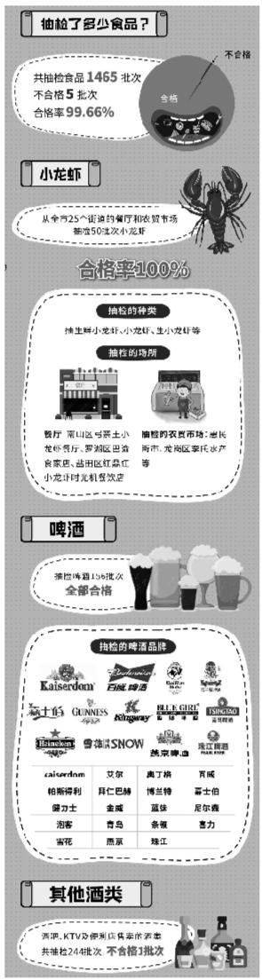 作為應(yīng)季食品,又是“網(wǎng)紅”食品,小龍蝦食品安全情況受到市民廣泛關(guān)注。專項(xiàng)行動共抽檢小龍蝦50批次,產(chǎn)品全部合格,合格率100%。