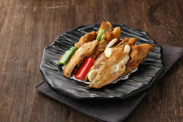 順德勒流名菜之一,明代李時(shí)珍認(rèn)為:“鳙之美在于頭”。取鳙魚,即大頭魚的魚頭精華部位——魚嘴入饌,用順德人擅長的煎焗技法使魚頭色澤金黃、鮮香嫩滑。
