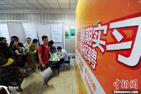 資料圖片:長沙舉辦暑期實習(xí)生專場招聘 來源:中新社