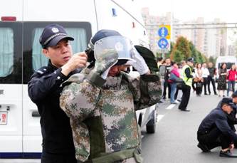 安防人員模擬真實場景,全副武裝參加現(xiàn)場演練