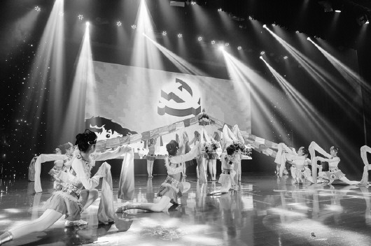 △景山小學師生表演《閃閃的紅星》音樂黨課