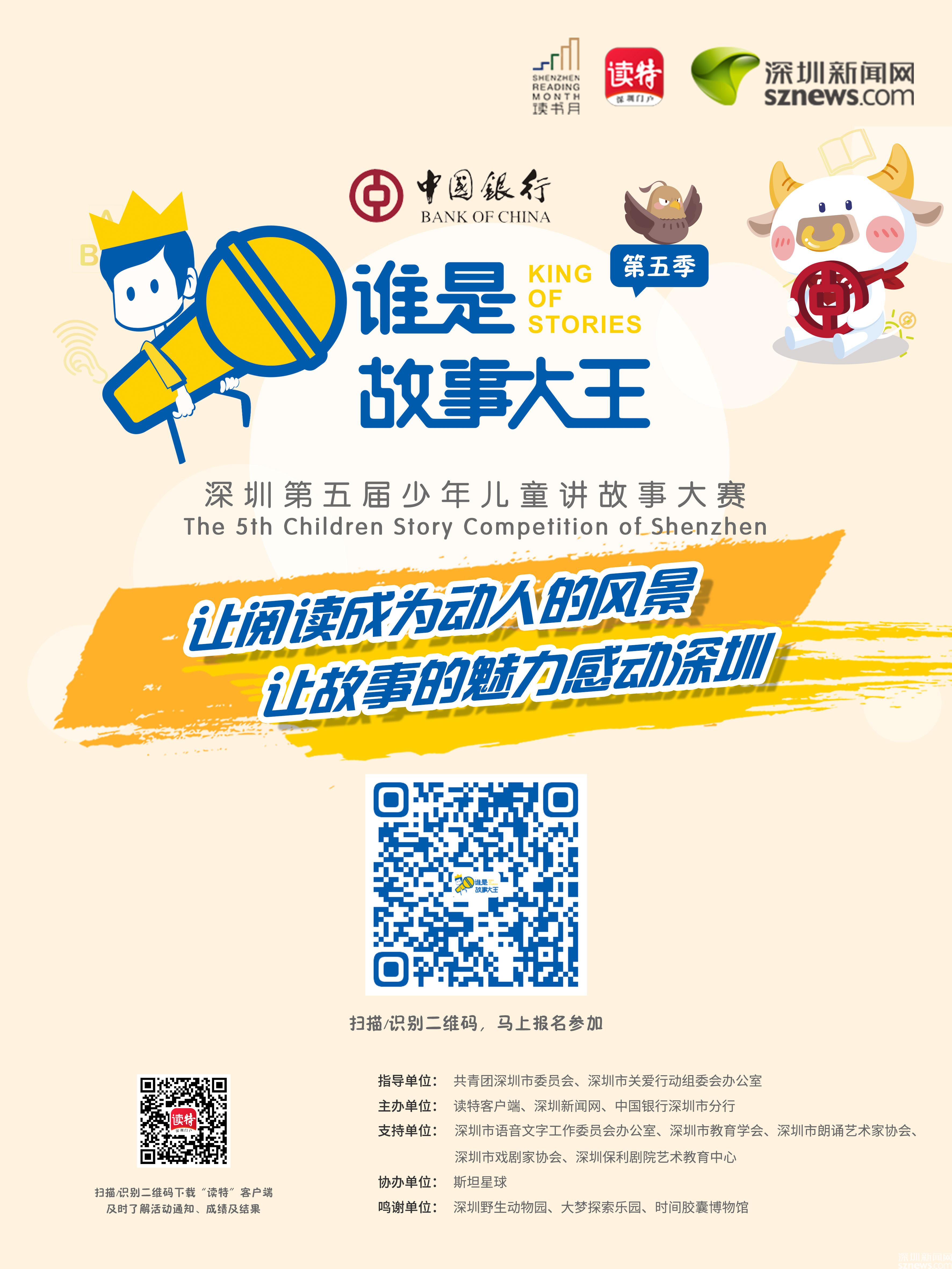據(jù)悉,“讓閱讀成為動(dòng)人的風(fēng)景,讓故事的魅力感動(dòng)深圳”是“誰(shuí)是故事大王”活動(dòng)的口號(hào)與主旋律。截止目前,“誰(shuí)是故事大王·第五季”有超過(guò)200余所學(xué)校報(bào)名參加,已舉行15場(chǎng)校園專(zhuān)場(chǎng)決賽,上百名學(xué)生在活動(dòng)選拔中脫穎而出,擁有了和全市各區(qū)其他學(xué)校同伴同臺(tái)競(jìng)技的機(jī)會(huì),后續(xù)還將舉行15場(chǎng)校園專(zhuān)場(chǎng)決賽;同時(shí),線(xiàn)上海選也在如火如荼地進(jìn)行著,且將一直持續(xù)到11月26日。(鵬城小記者:文云韜  寫(xiě)作指導(dǎo):曹園芳)