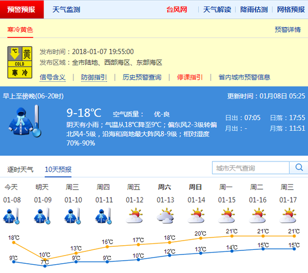深圳新聞網(wǎng)1月8日訊(記者 何暢)據(jù)深圳市氣象臺8日5:25發(fā)布,深圳預(yù)計(jì)8-9日受強(qiáng)冷空氣影響,陰天有小雨,氣溫逐漸下降,8日傍晚前后降至9℃,北風(fēng)加大,沿海和高地最大陣風(fēng)8-9級左右,9日最低氣溫降至7℃左右,北部及山區(qū)再低1-2℃;展望10日起雨停,轉(zhuǎn)多云到晴,空氣干燥,早晚寒冷。
