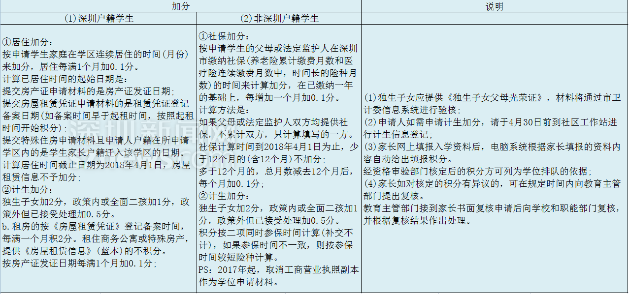 入學(xué)必看!2018深圳10區(qū)小一初一積分計算標(biāo)準(zhǔn)在此