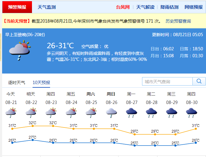 據(jù)深圳氣象臺預計,21日~22日,深圳多云,局地易出現(xiàn)雷陣雨,風力持續(xù)微弱,部分時間還有輕霧或霾,能見度較差。其中,21日早晚濕度大,有輕霧,中午以后濕度有所下降,大部分地區(qū)輕霧會轉(zhuǎn)成輕度灰霾。
