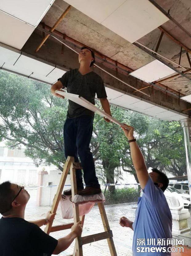 邊檢技術(shù)民警在搶修被強(qiáng)臺(tái)風(fēng)破壞的現(xiàn)場(chǎng)設(shè)施