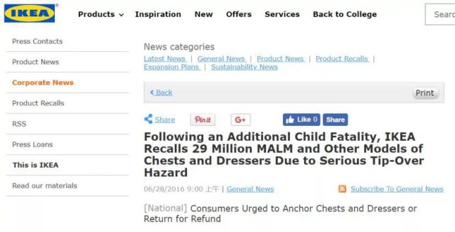 根據(jù)美國(guó)消費(fèi)者產(chǎn)品安全委員會(huì)的數(shù)據(jù),宜家當(dāng)時(shí)在全球召回了2300萬(wàn)件該系列產(chǎn)品 -其中包括近300萬(wàn)件在美國(guó)銷(xiāo)售的產(chǎn)品和110萬(wàn)件在加拿大銷(xiāo)售的產(chǎn)品。