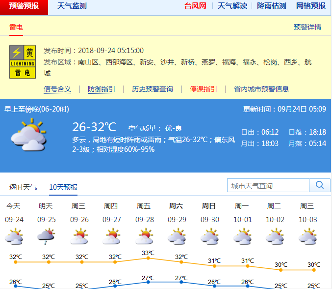 9月24日05:15分,深圳市氣象臺發(fā)布雷電黃色預(yù)警信號