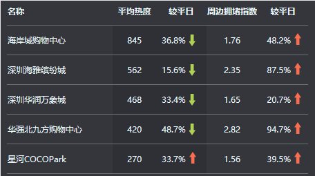22日12時(shí)至今日12時(shí),全市各大型商圈周邊道路交通壓力較平日有所上升,擁堵高峰出現(xiàn)在22日16時(shí)至18時(shí),熱門大型商圈周邊道路較為擁堵的有:華強(qiáng)北九方購(gòu)物中心、深圳海雅繽紛城和海岸城購(gòu)物中心。