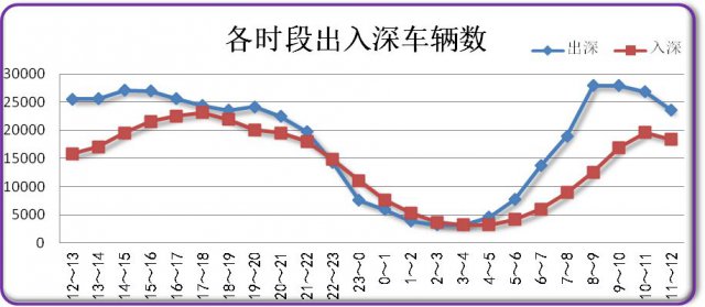 繼22日出入深平穩(wěn)有序的狀況,今天目前我市主要出入深道路運(yùn)行正常,從6時(shí)開始,出深車流開始增加,8時(shí)至9時(shí)達(dá)到峰值,達(dá)2.8萬(wàn)輛次,整體行車狀況較好,道路較為通暢。