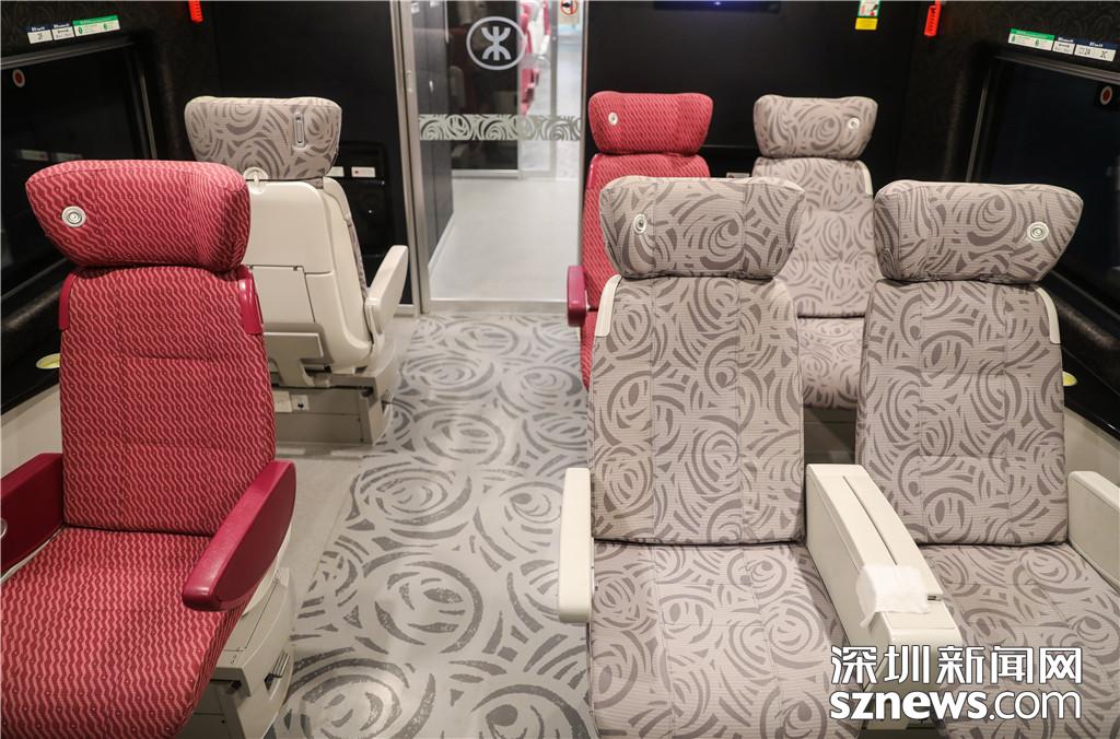 廣深港高鐵一等座車廂座椅和地板上印有玫瑰花紋
