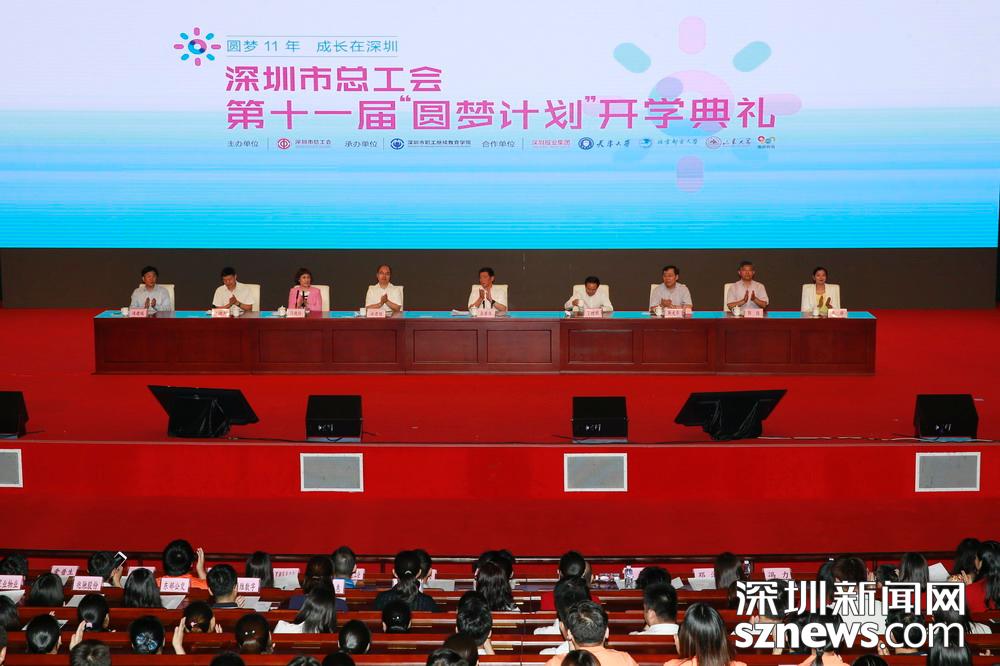深圳新聞網(wǎng)9月28日訊(記者任玥 陳曉晴 通訊員 杜南星)今天(9月28日)下午,深圳市總工會(huì)第十一屆“圓夢(mèng)計(jì)劃”開(kāi)學(xué)典禮在市民中心B區(qū)禮堂舉行。本屆“圓夢(mèng)計(jì)劃”共投入幫扶經(jīng)費(fèi)1350萬(wàn)元,資助3000名職工攻讀高等教育專本科學(xué)歷及1500名職工參加公益技能培訓(xùn)和中等職業(yè)教育,幫扶規(guī)模創(chuàng)歷屆之最。市人大常委會(huì)副主任、市總工會(huì)主席喬家華出席典禮。新生代表、市總工會(huì)和市教育局相關(guān)領(lǐng)導(dǎo)、合作高校和單位代表等1500余人參加了開(kāi)學(xué)典禮。本次開(kāi)學(xué)典禮首次面向觀眾進(jìn)行全程網(wǎng)絡(luò)直播。