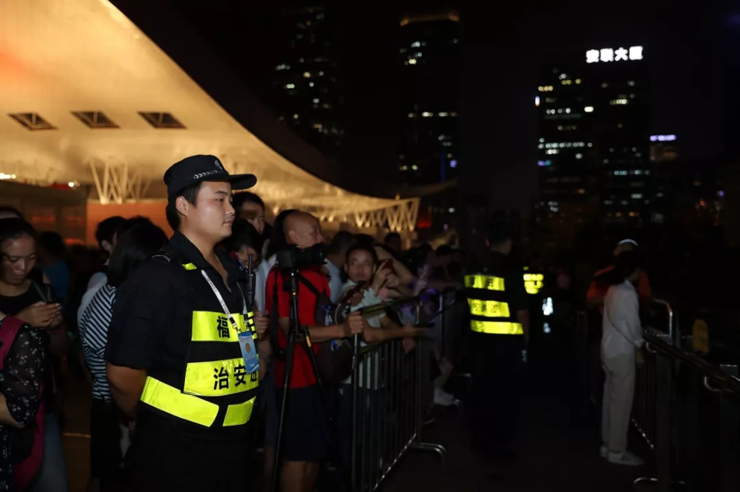“燈光秀”活動正式表演首日,現(xiàn)場觀演人數(shù)約54300人,福田公安分局出動1000名警力在現(xiàn)場及周邊維持秩序,確?;顒禹樞蚺e行。