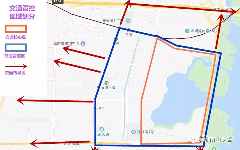 南山交警將以燈光秀觀賞人群最為密集的人才公園為中心,由內(nèi)至外分為交通核心區(qū)、交通管控區(qū)、交通疏導(dǎo)(分流)區(qū)。