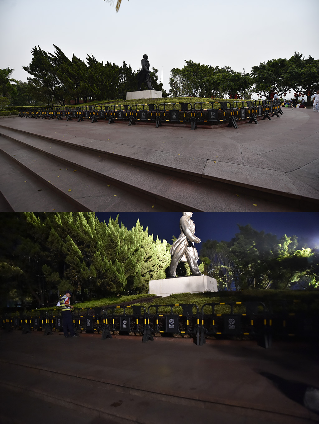 鄧小平雕塑右側(cè),燈光秀結(jié)束后垃圾迅速被責任環(huán)衛(wèi)工人清掃