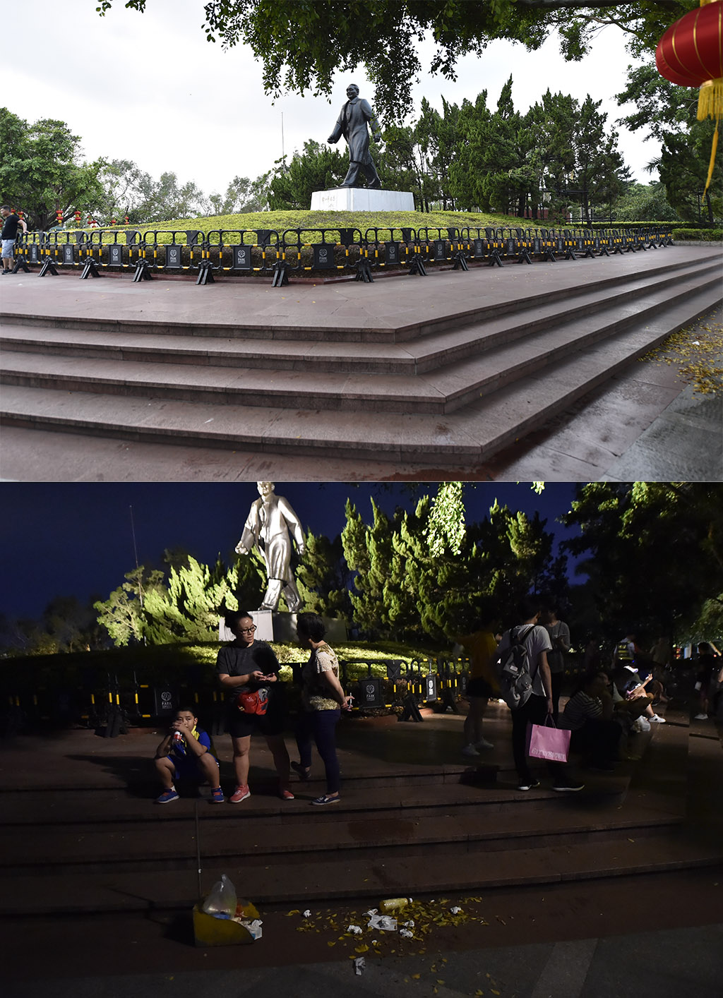 燈光秀期間,臺階和廣場連接的過道無垃圾遺留