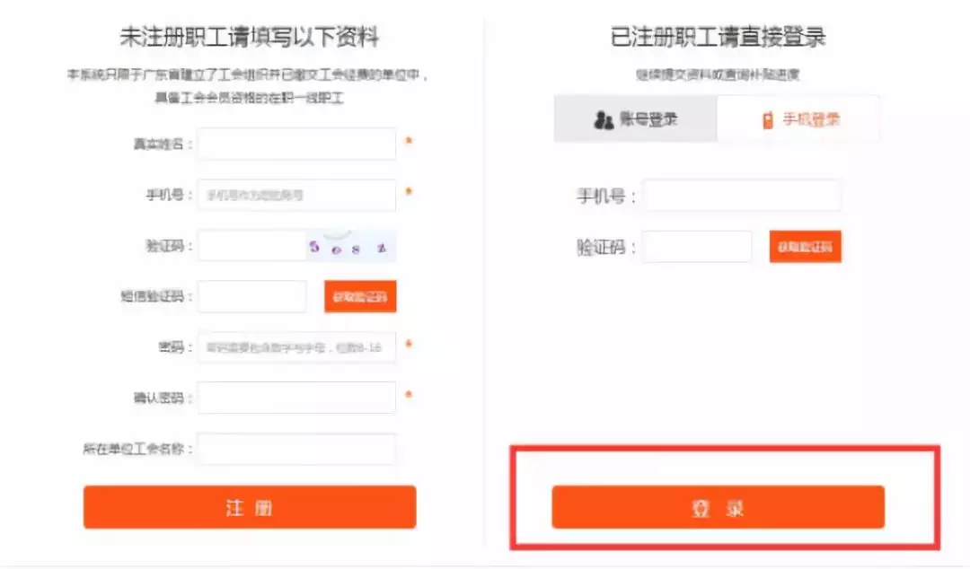2.已注冊職工,點擊選擇“已登記用戶”--填寫賬號密碼--點擊“登錄”。
