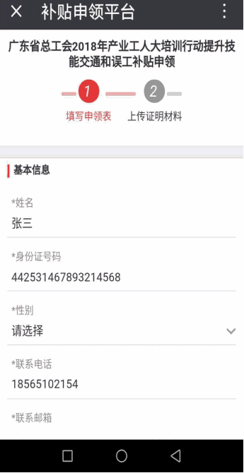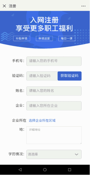 1.新注冊職工必須填寫完整信息--點擊提交資料--完成注冊,系統(tǒng)自動跳轉(zhuǎn)領(lǐng)取補貼頁面;