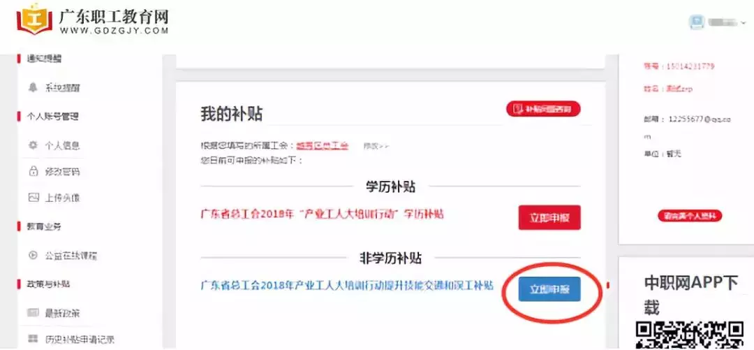 第四步:正式進入職工教育補貼申領(lǐng)平臺。