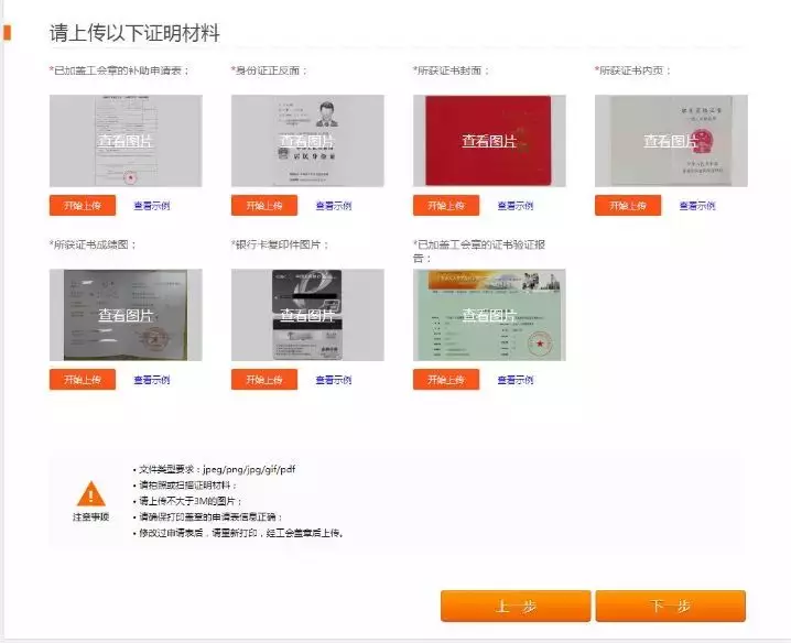 第四步:按要求上傳相關(guān)證明材料,點擊【提交資料】;