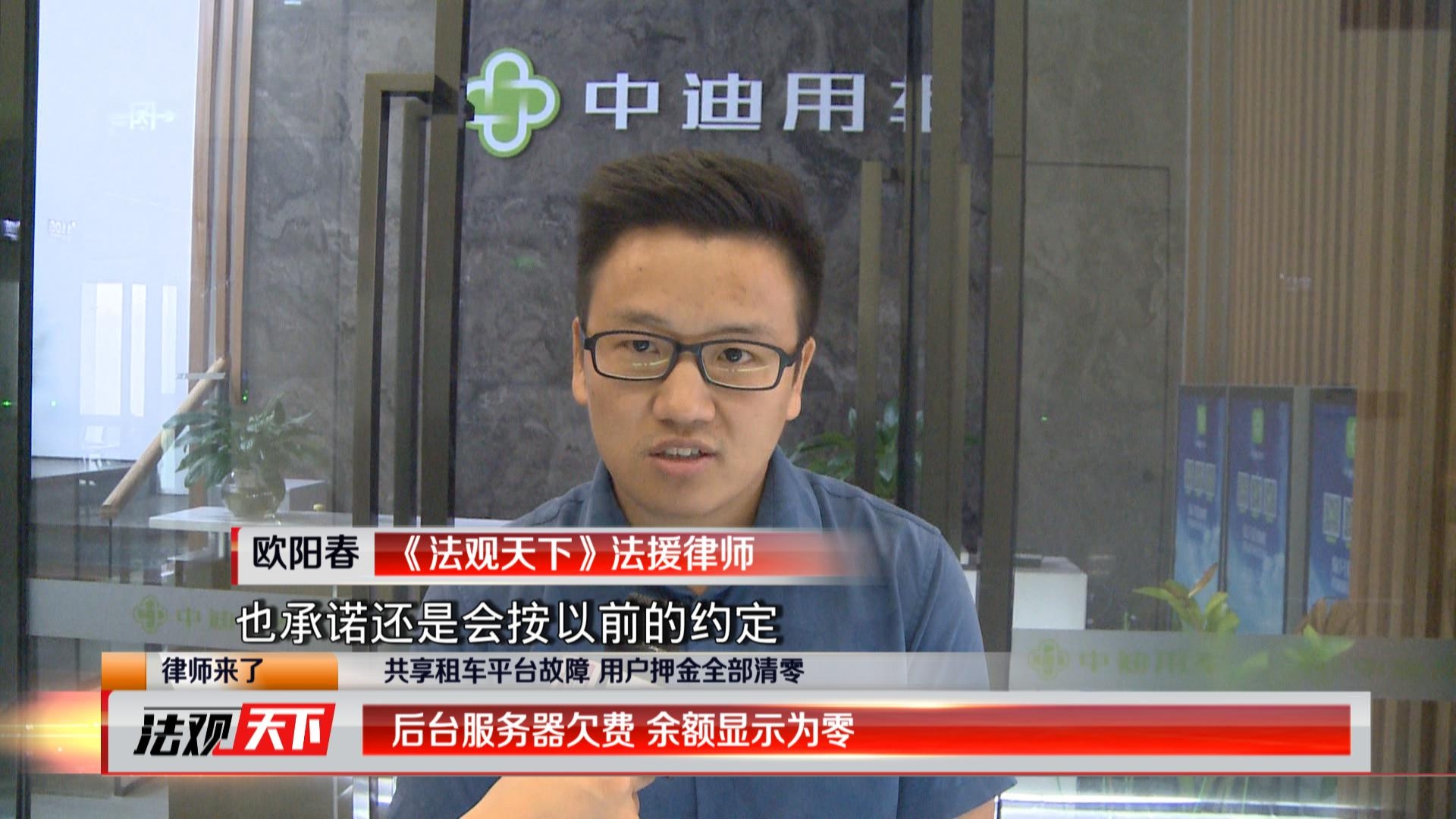 隨后,《法觀天下》嘉賓律師歐陽春陪同用戶一起來到了中迪用車所屬的公司,該公司名為深圳市中云信通科技有限公司,位于寶安區(qū)西鄉(xiāng)大道旁的滿京華現(xiàn)代西谷大廈3座11樓了解情況。進(jìn)入公司后,中云信通科技有限公司代表李先生接待了我們,并且說明了APP使用不了和余額顯示為零的具體原因。